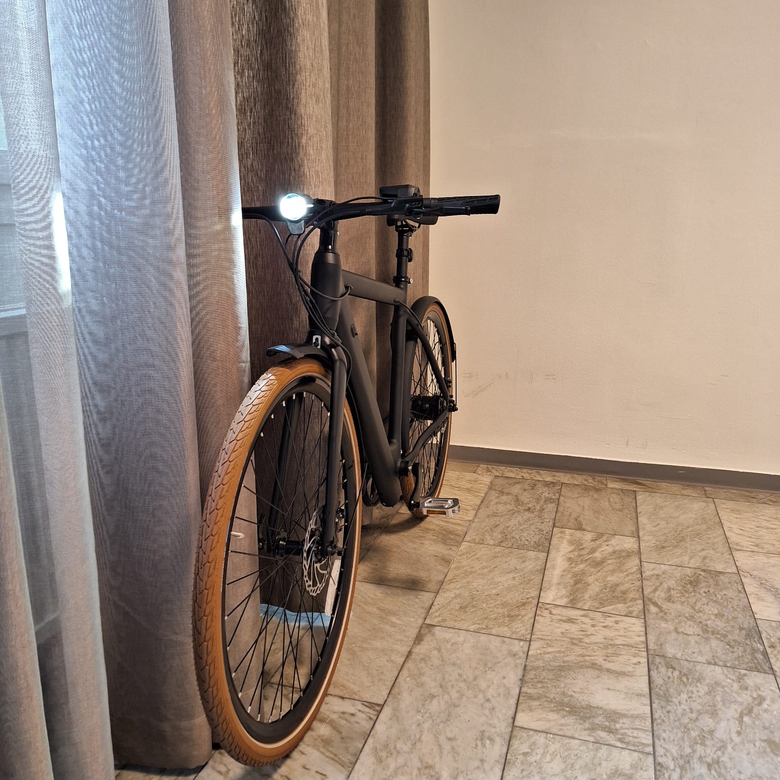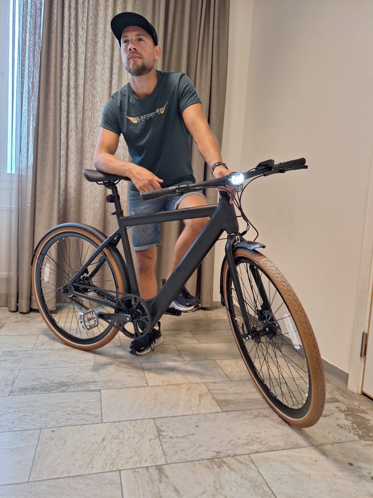 Älskar designen och att den är så smidig och lätt. Motorn är ok om man väger 80 kg som mig. Bra att man får trampa lite också. Det är inga växlar utan man ställer elassistansen, tre olika nivåer, efter hur mycket hjälp man behöver för stunden. Cykeln glider smidigt fram. Batteriet känns bra. Bra bromsar Hydraliska!