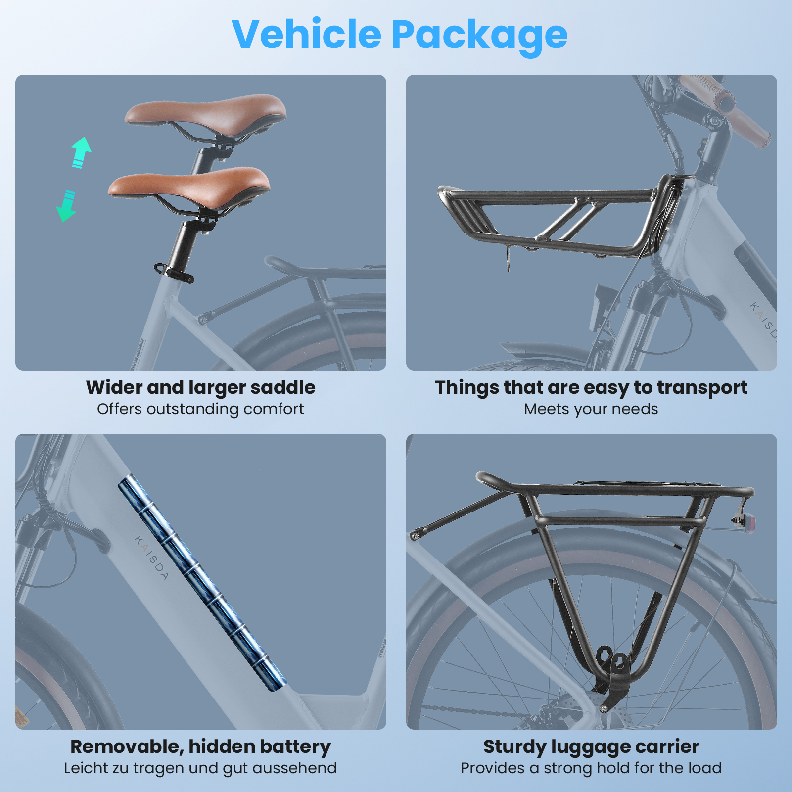 Fram- och bakpakethållare ger gott om plats för packning och den medföljande LED-belysningen gör dig synlig i alla ljusförhållanden.