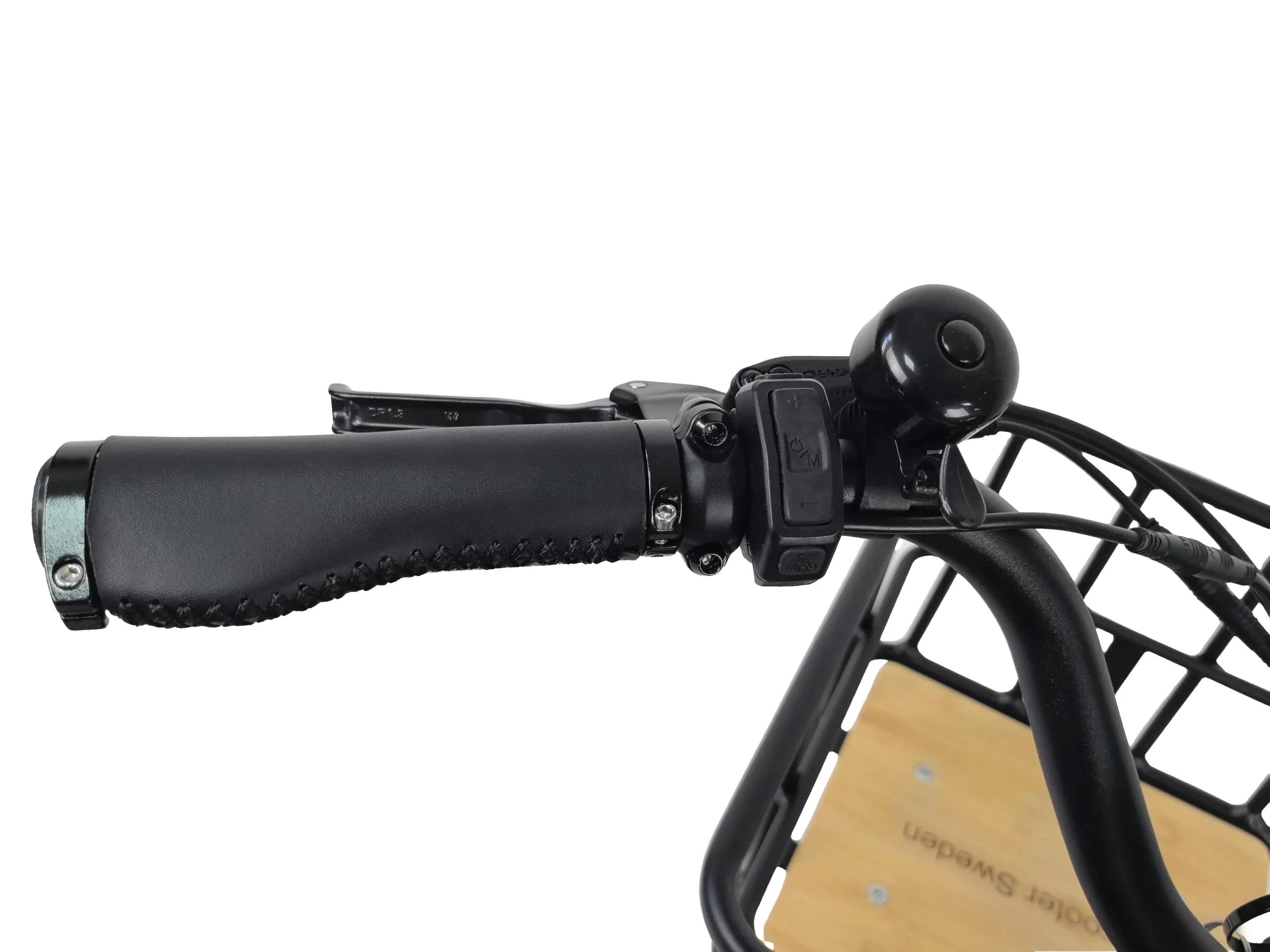 Säkerheten har inte kompromissats. Denna elcykel inkluderar ett stöldsäkert lås i solid metall och LED-belysning för ökad synlighet. Med en SAMSUNG 48V/20AH-batteri, garanteras en pålitlig och lång räckvidd.