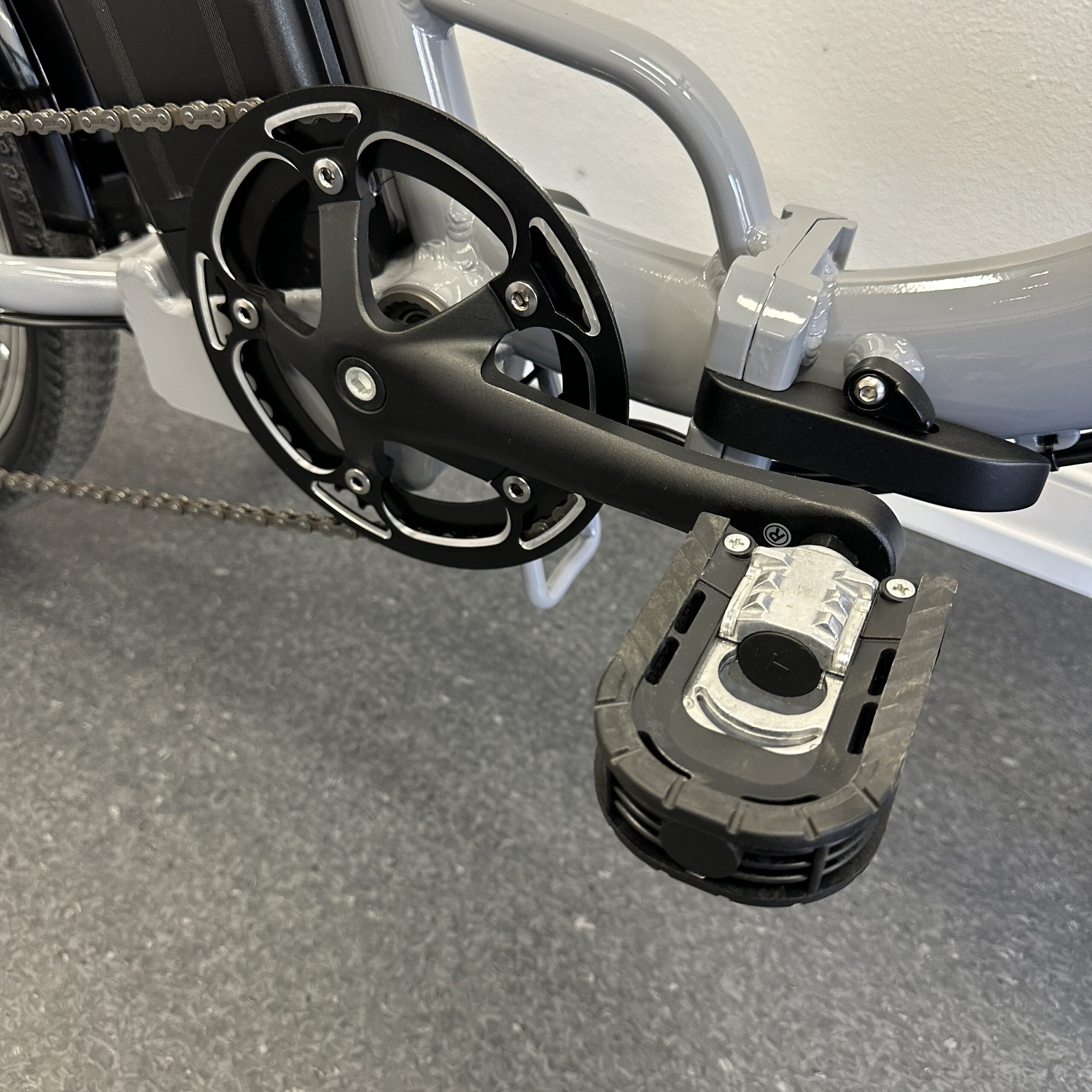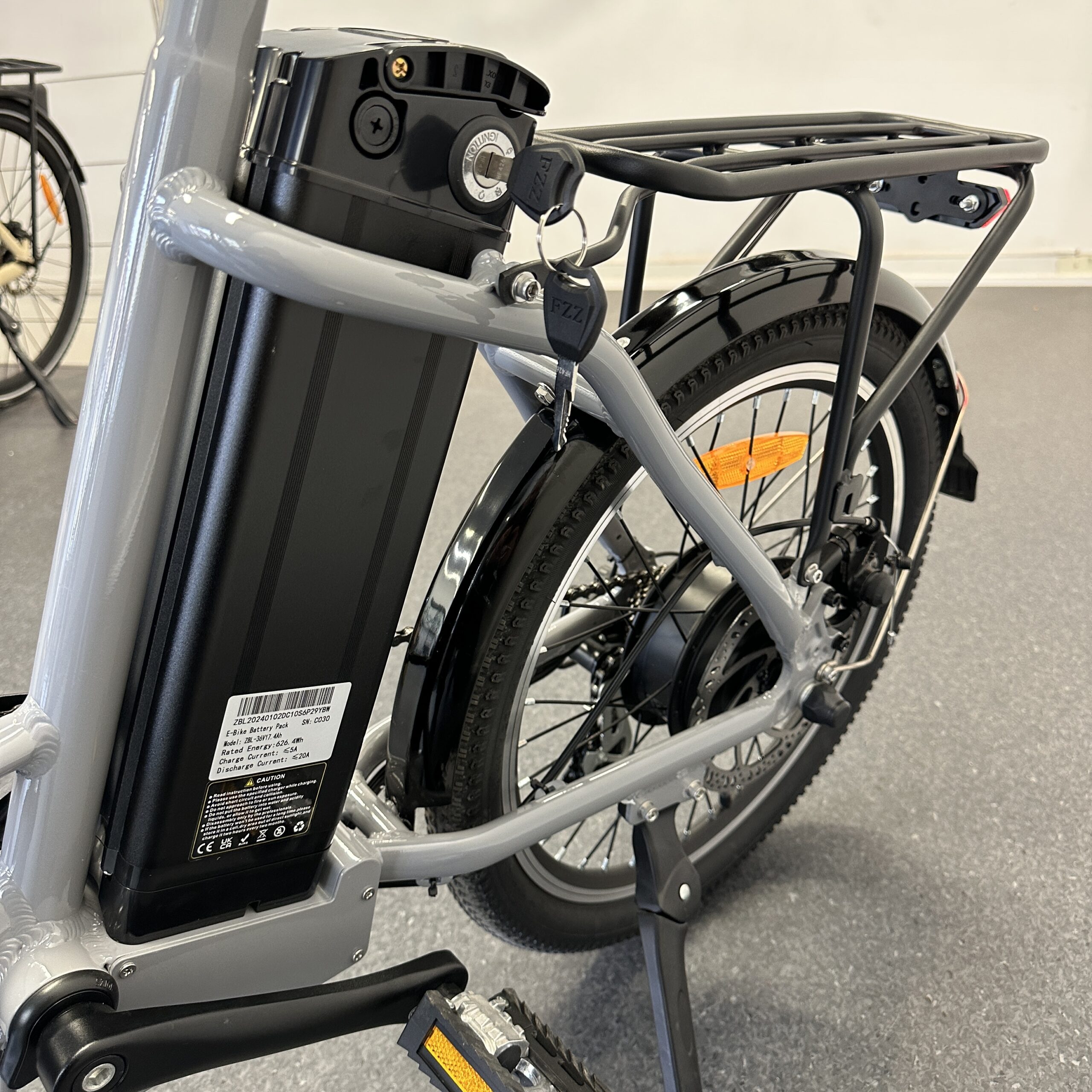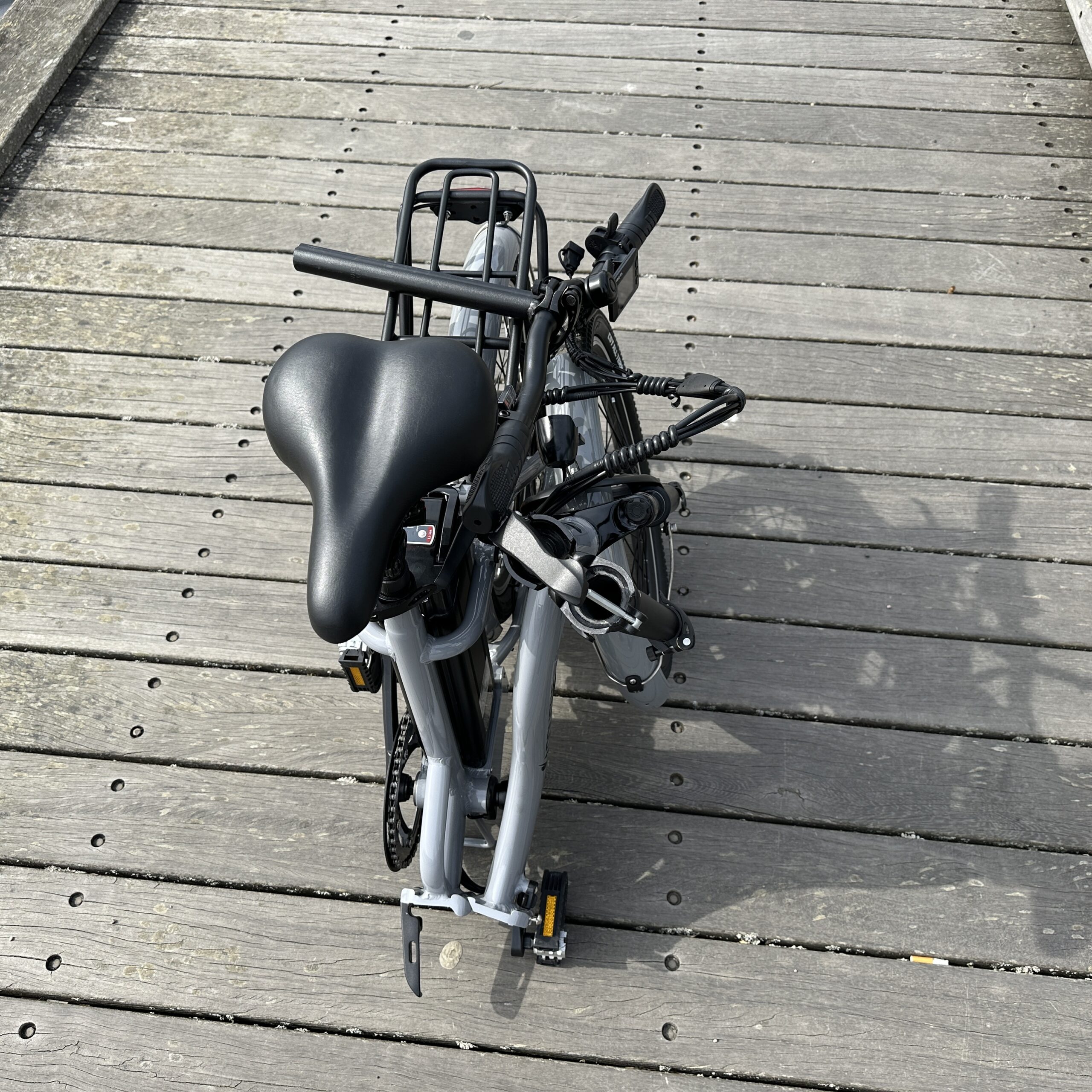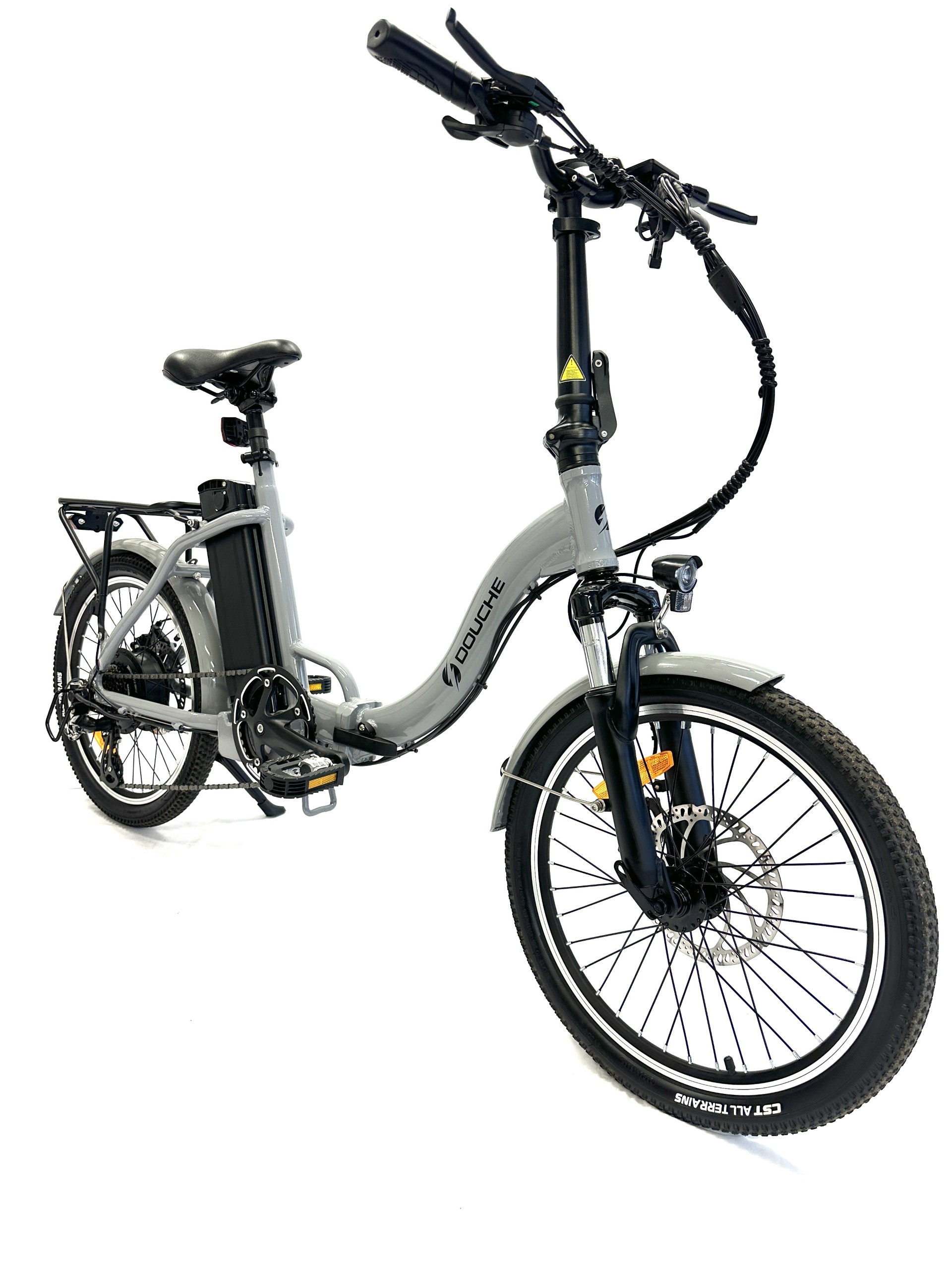Elcykel DOUCHE 250W FLEX skiljer sig från mängden med sin praktiska vikbara design, vilket gör det enkelt att transportera och förvara cykeln. Cykelns ram är gjord av lätt aluminium och kan enkelt fällas ihop till måtten 85l x 55b x 65h cm. Den anpassningsbara sadeln och styret passar åkare med längd från 150 till 190 cm. Höjden på både styret (105-125 cm) och sadeln (83-100 cm) kan justeras för optimal komfort.
