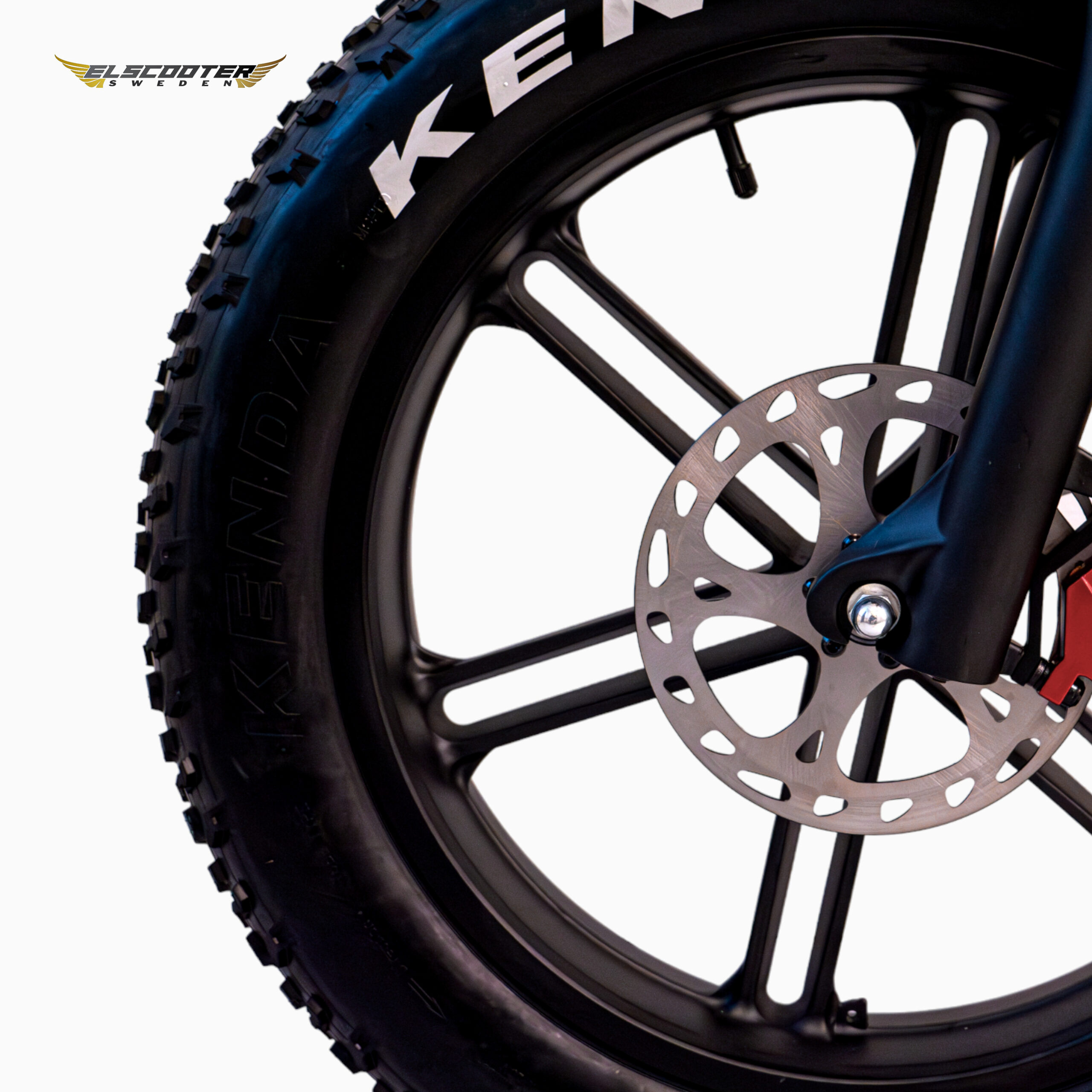 - Tekniska Specifikationer: Med hydrauliska bromsar, uppgraderade bromsok och KENDA SPORT 20*4” däck, säkerställer denna cykel högsta möjliga säkerhet och komfort. Fälgar i svart aluminium bidrar till dess sofistikerade utseende.