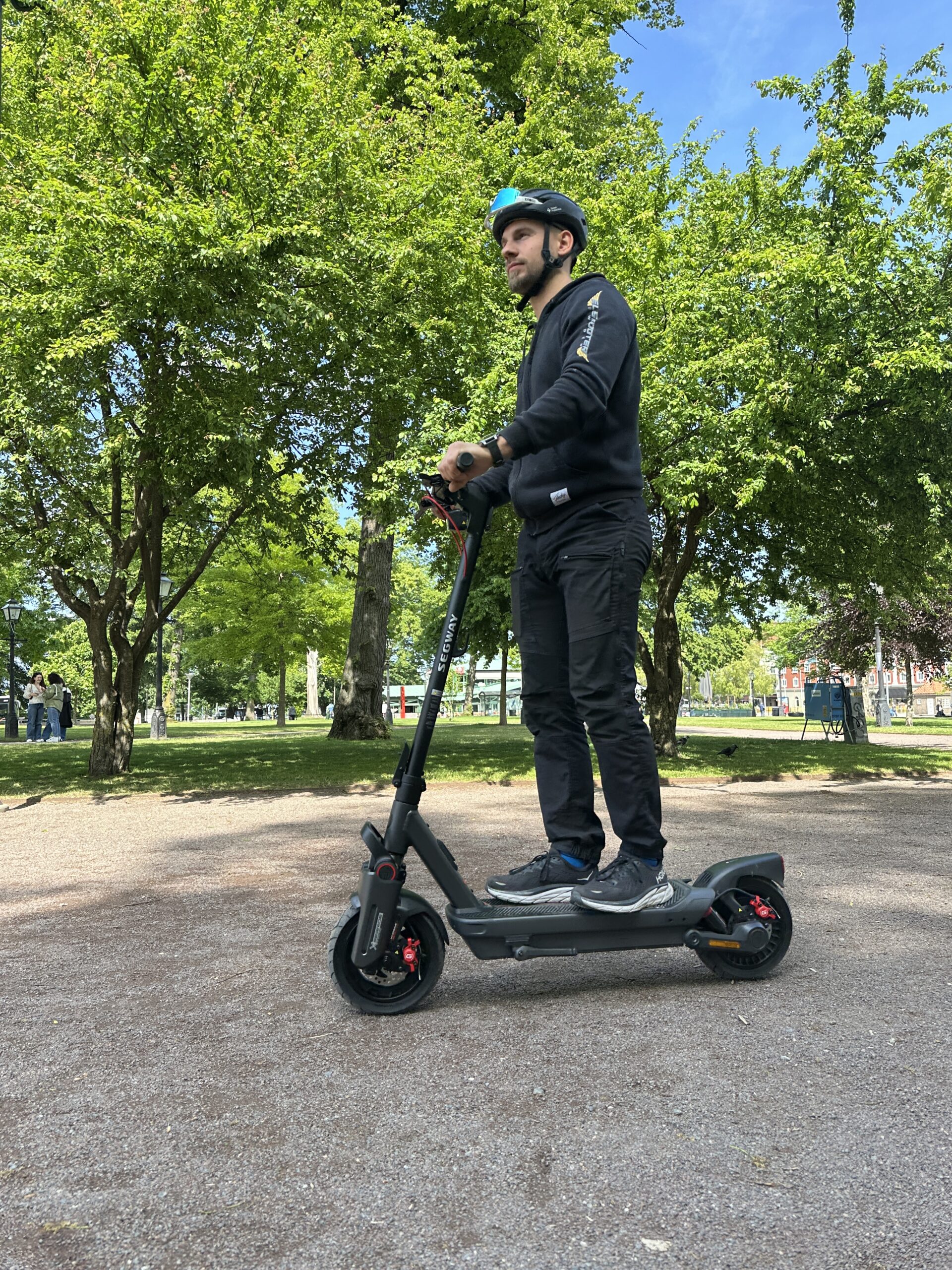 Säkerheten har också förbättrats. MAX G3 E har skivbromsar både fram och bak, vilket ger bättre bromskraft och kontroll. Tidigare modeller, som MAX G30, hade endast en elektronisk broms och en mekanisk trumbroms, vilket inte gav samma säkerhet och stabilitet vid inbromsningar.